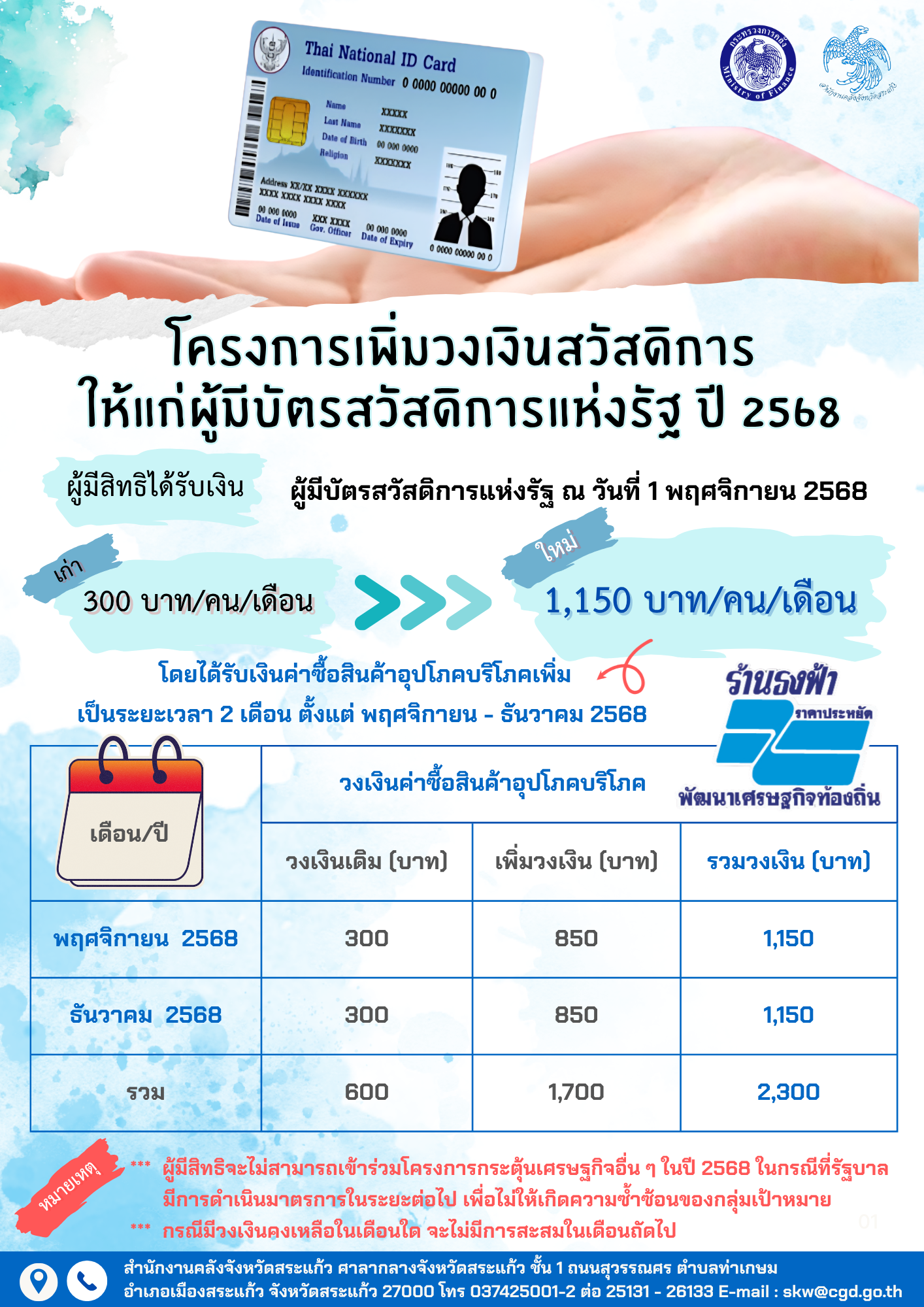 โครงการเพิ่มวงเงินสวัสดิการให้แก่ผู้มีบัตรสวัสดิการแห่งรัฐ ปี 2568