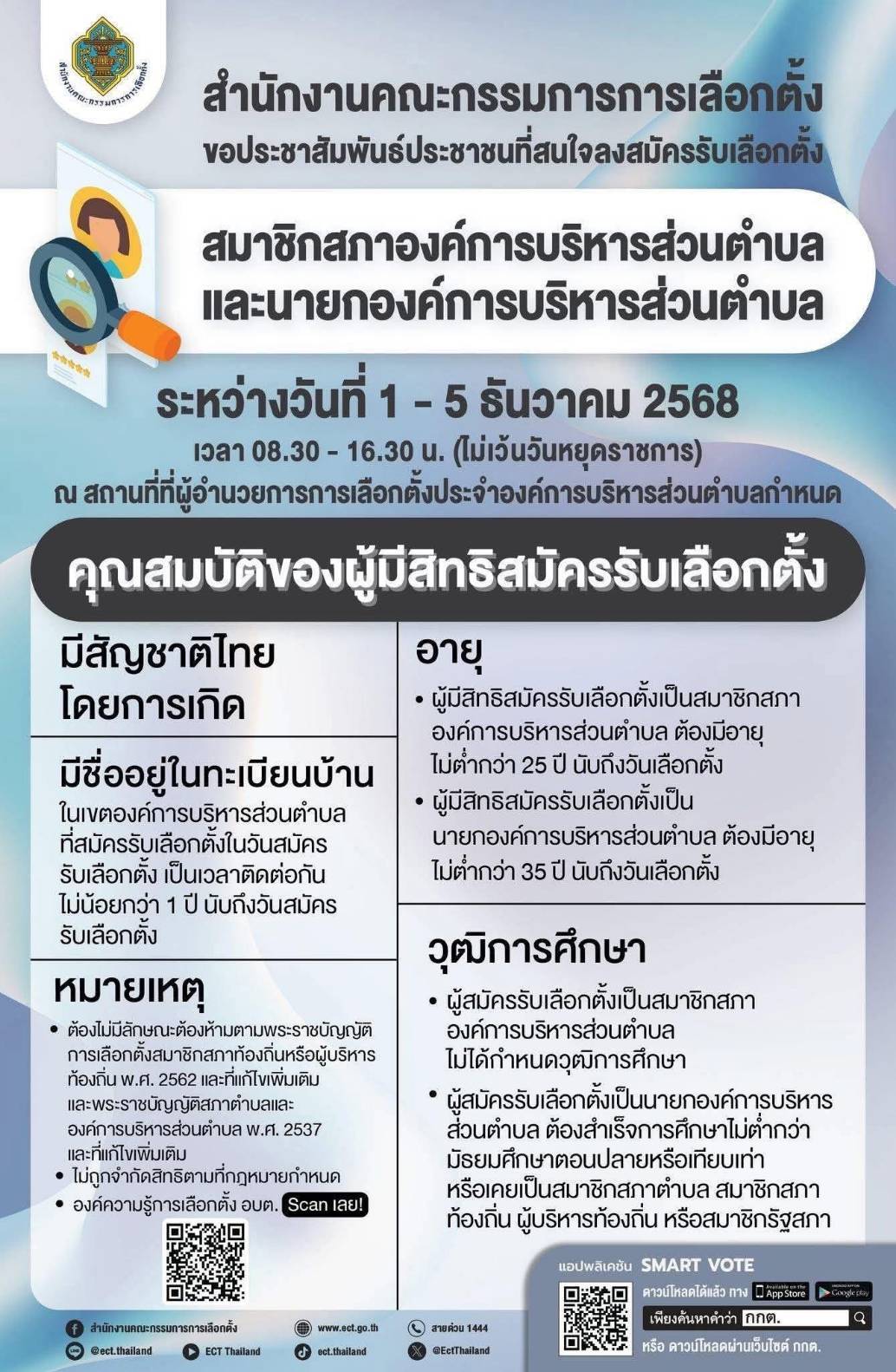 ประชาสัมพันธ์การสมัครรับการเลือกตั้งสมาชิกสภาองค์การบริหารส่วนตำบลและนายกองค์การบริหารส่วนตำบล